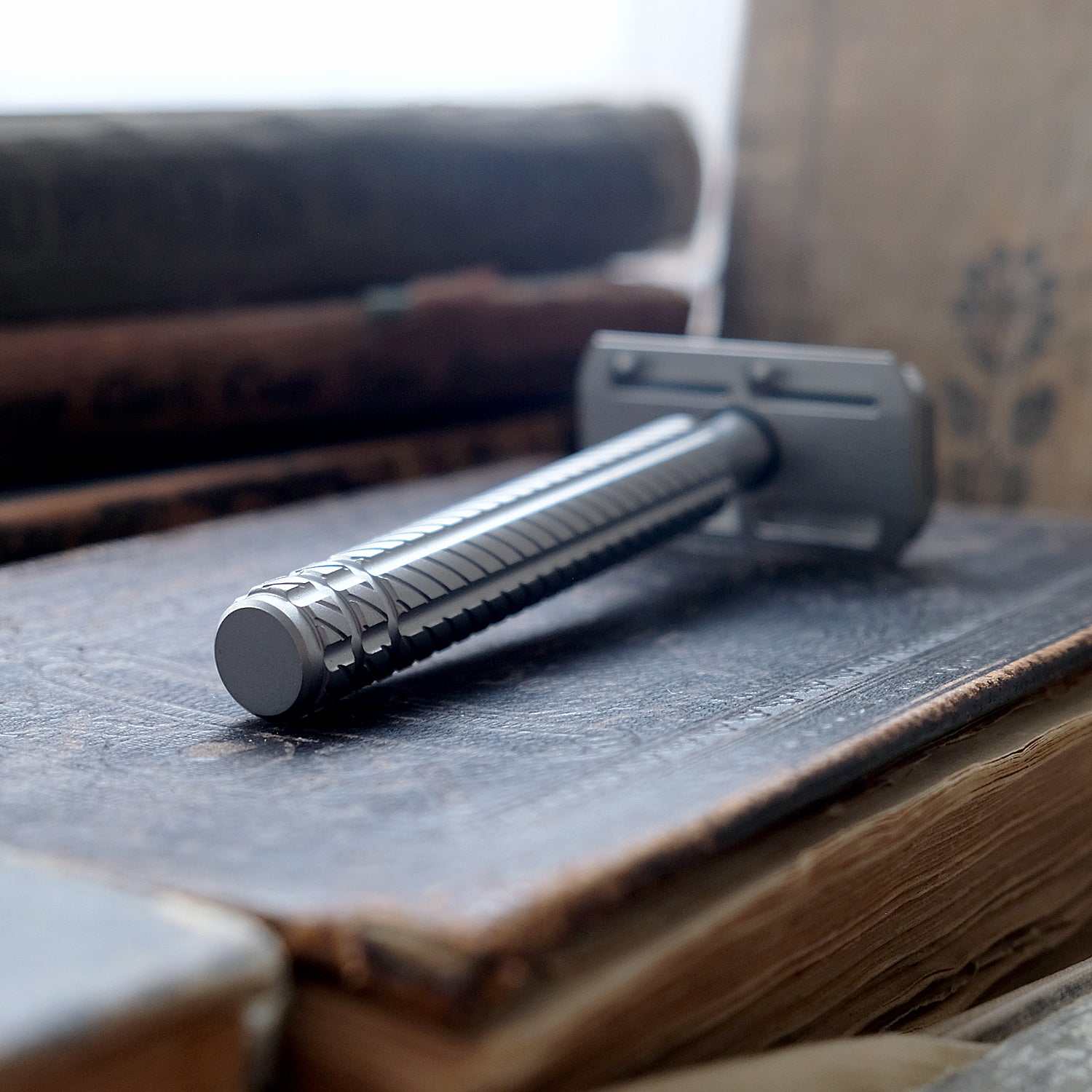 Our Drakkant line of razors in 316 stainless steel or grade 5 titanium are manufactured at a small batch CNC machine shop in Pennsylvania USA.